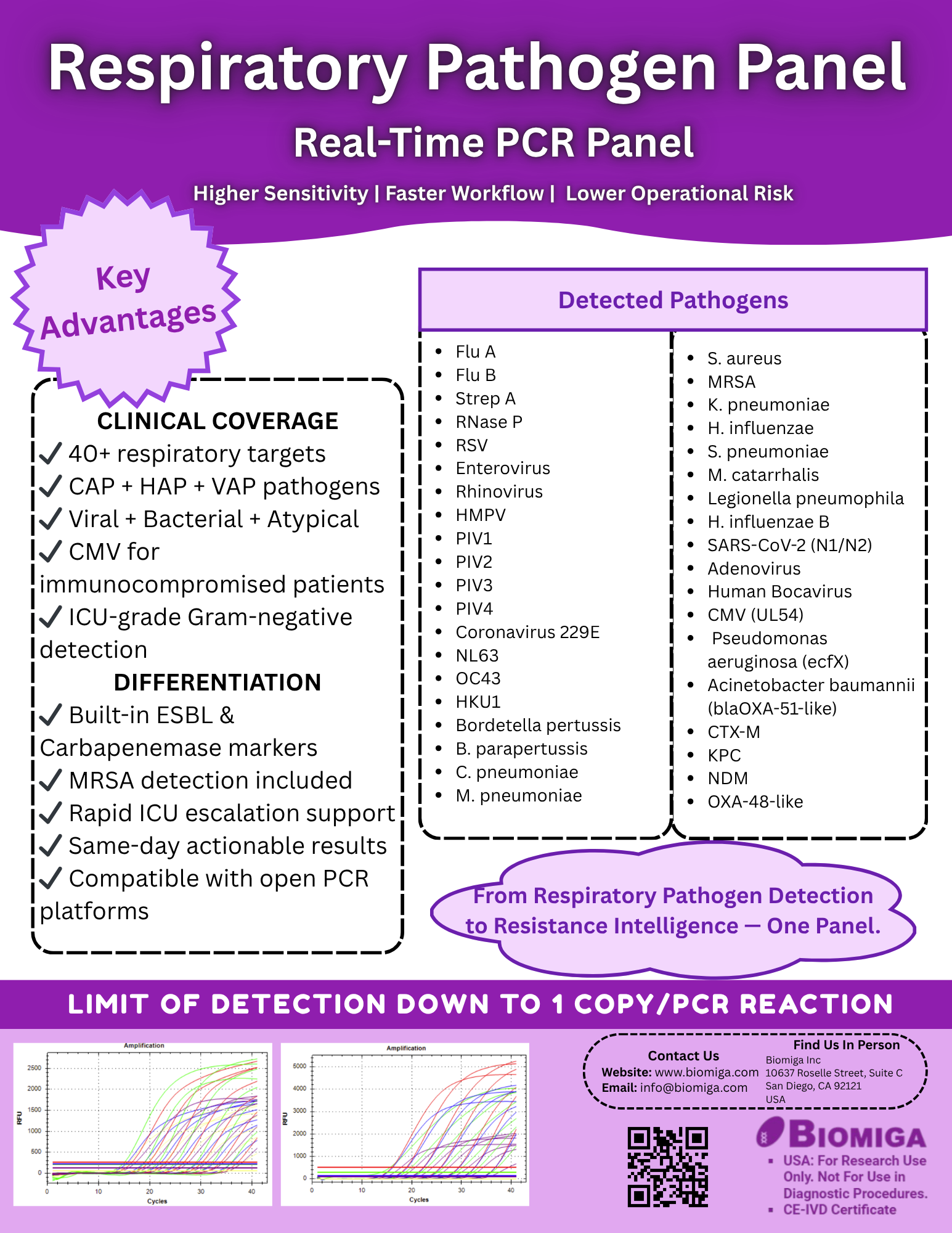 The respiratory panel real time PCR detection reagent is designed for simultaneous detection of the following pathogens: